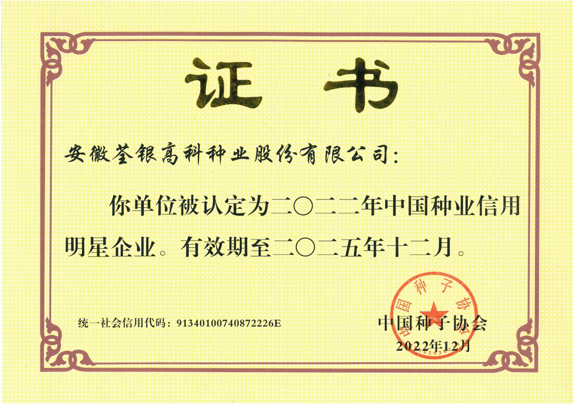 中國種業信用骨干企業